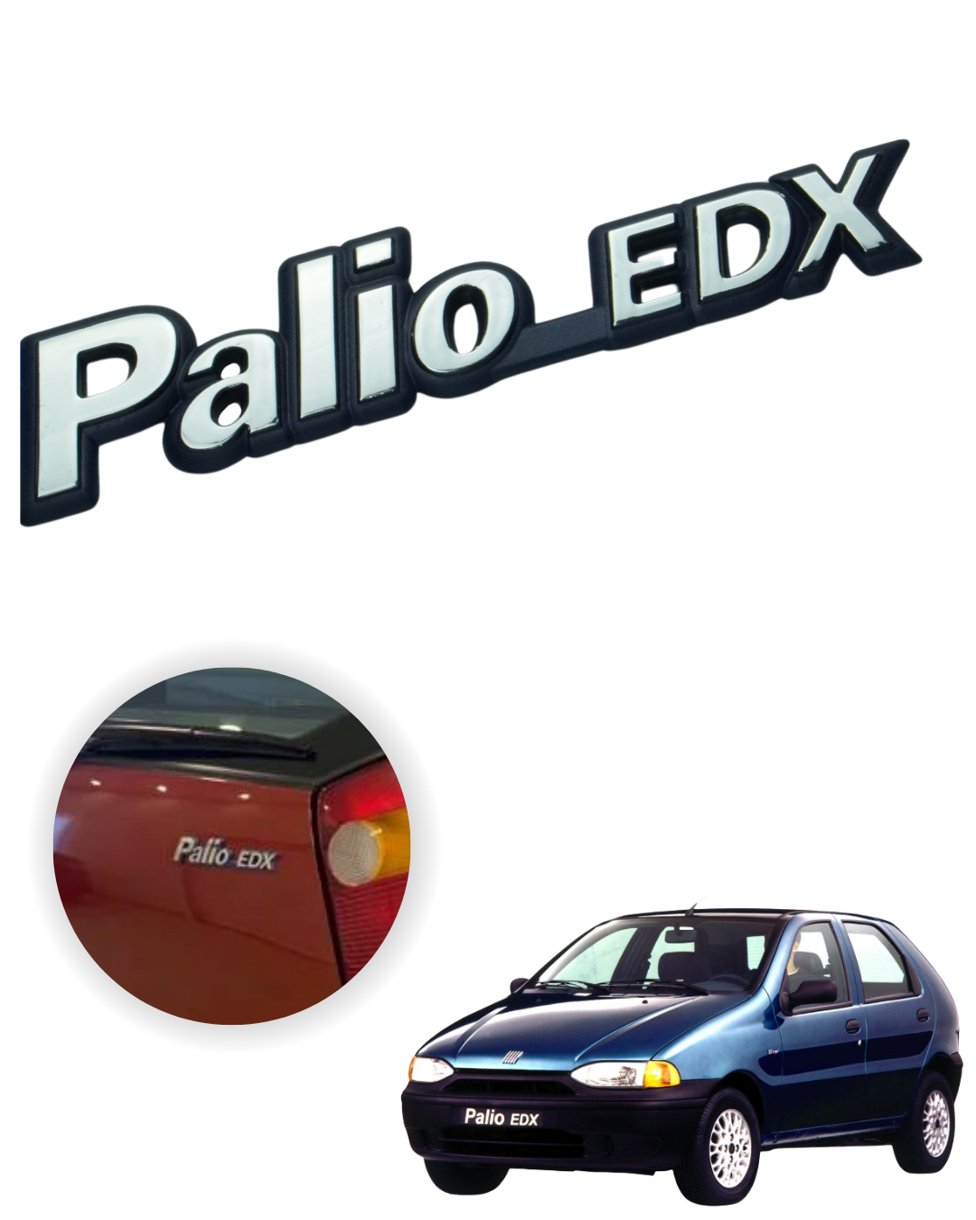 Emblema EDX desenvolvido para reposição e acabamento do veículo, ideal para restaurar a identidade visual da traseira do Fiat Palio EDX. Proporciona visual limpo, bem alinhado e compatível com o padrão de fábrica do modelo.
