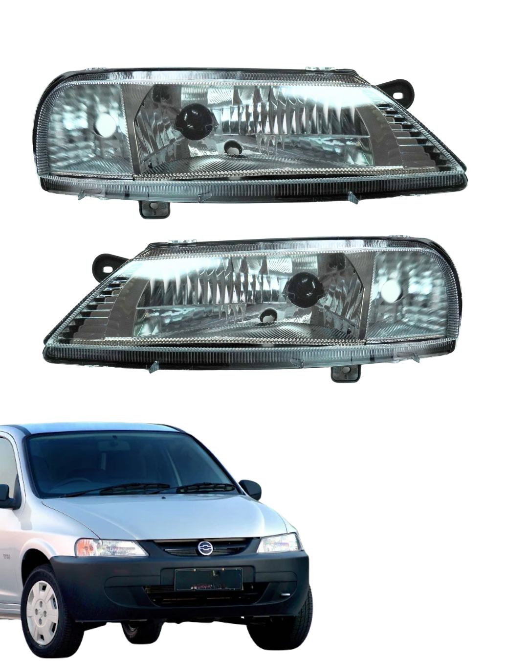 Conjunto de faróis dianteiros desenvolvido para reposição e restauração do sistema de iluminação do veículo. As peças garantem iluminação eficiente, melhor visibilidade noturna e mantêm o padrão visual original da dianteira, contribuindo para a segurança e o acabamento correto do automóvel.
