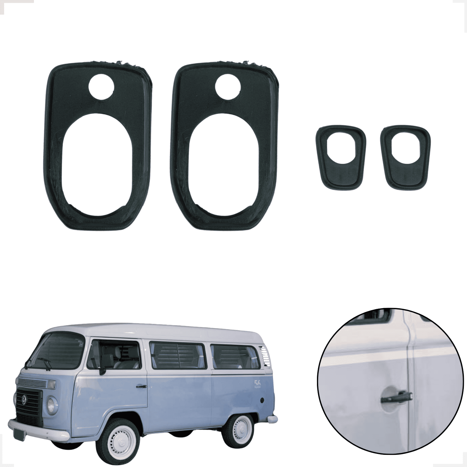 A guarnição de borracha da maçaneta da porta é responsável por garantir vedação e acabamento adequado na região da maçaneta, evitando infiltrações de água, poeira e vibrações. Produzida em borracha de alta qualidade, proporciona encaixe preciso e durabilidade, preservando a estética e a funcionalidade da Kombi.