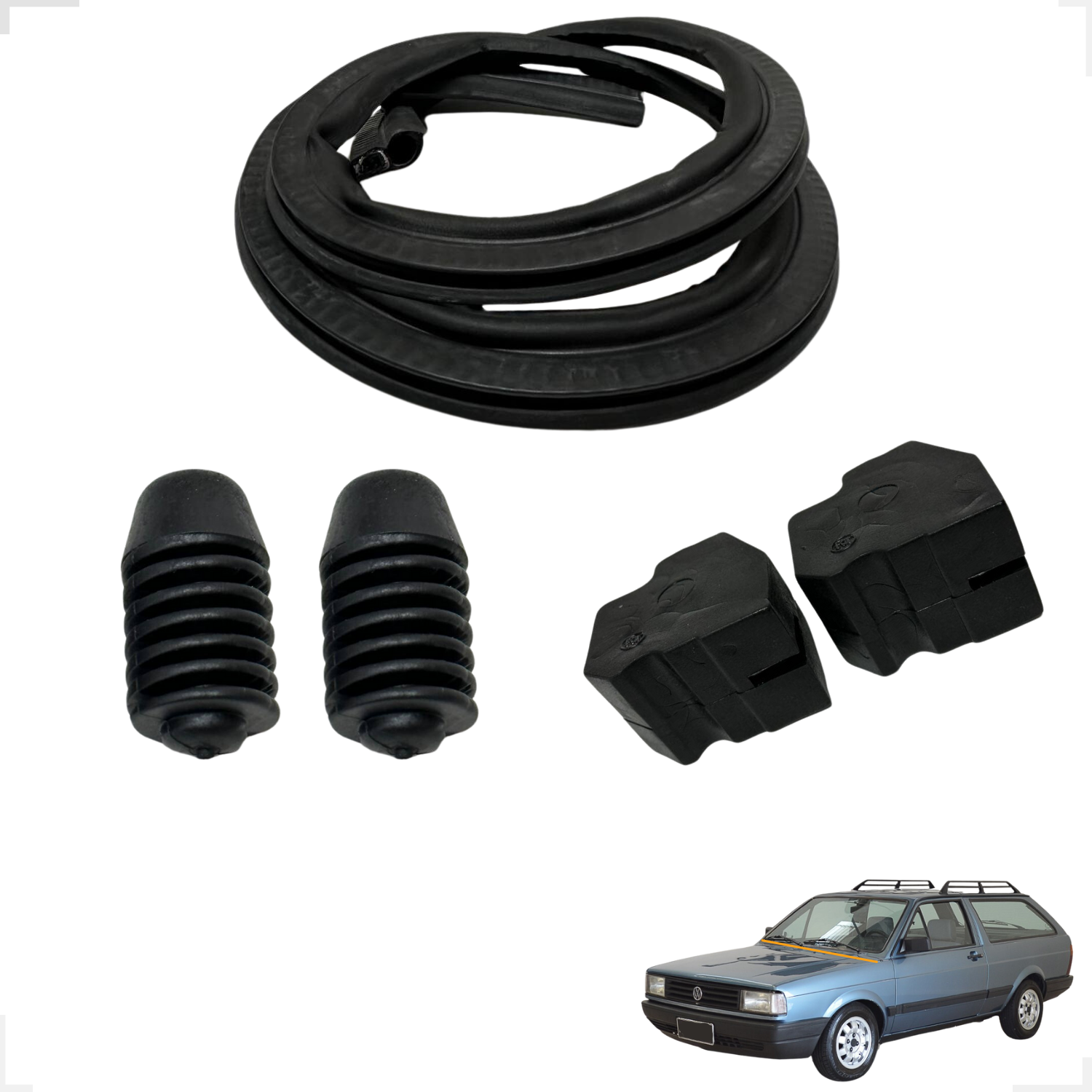 Kit de borrachas de vedação para batentes, desenvolvido para garantir melhor vedação, absorção de impactos e proteção contra vibrações. Produzido em borracha de alta qualidade, proporciona maior durabilidade e encaixe preciso, preservando o alinhamento das partes do veículo e evitando ruídos.