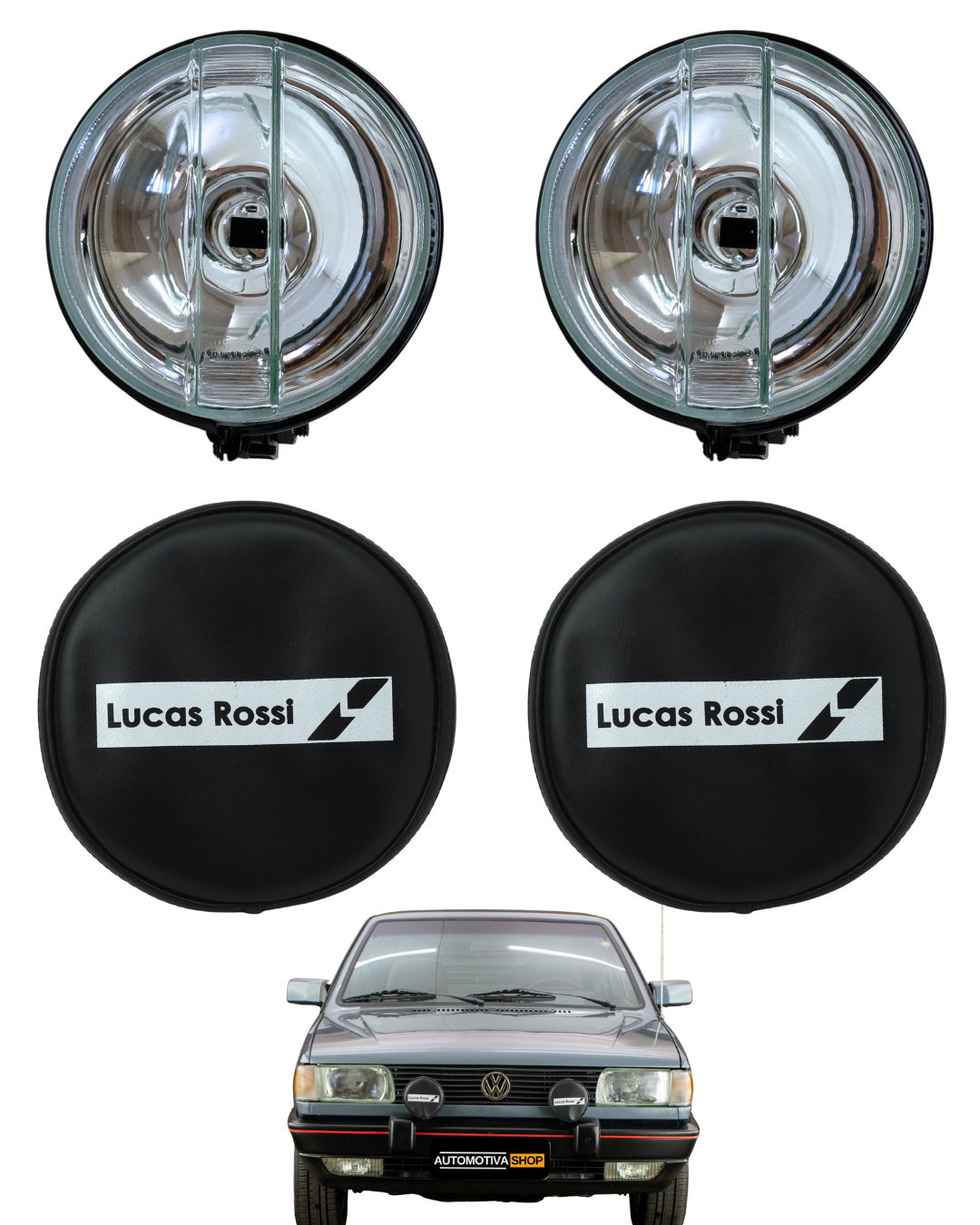 Produzido com lente em vidro, estrutura metálica resistente e capa em courvin de alta durabilidade, o conjunto oferece excelente acabamento, resistência e longa vida útil, com encaixe universal para aplicação automotiva.