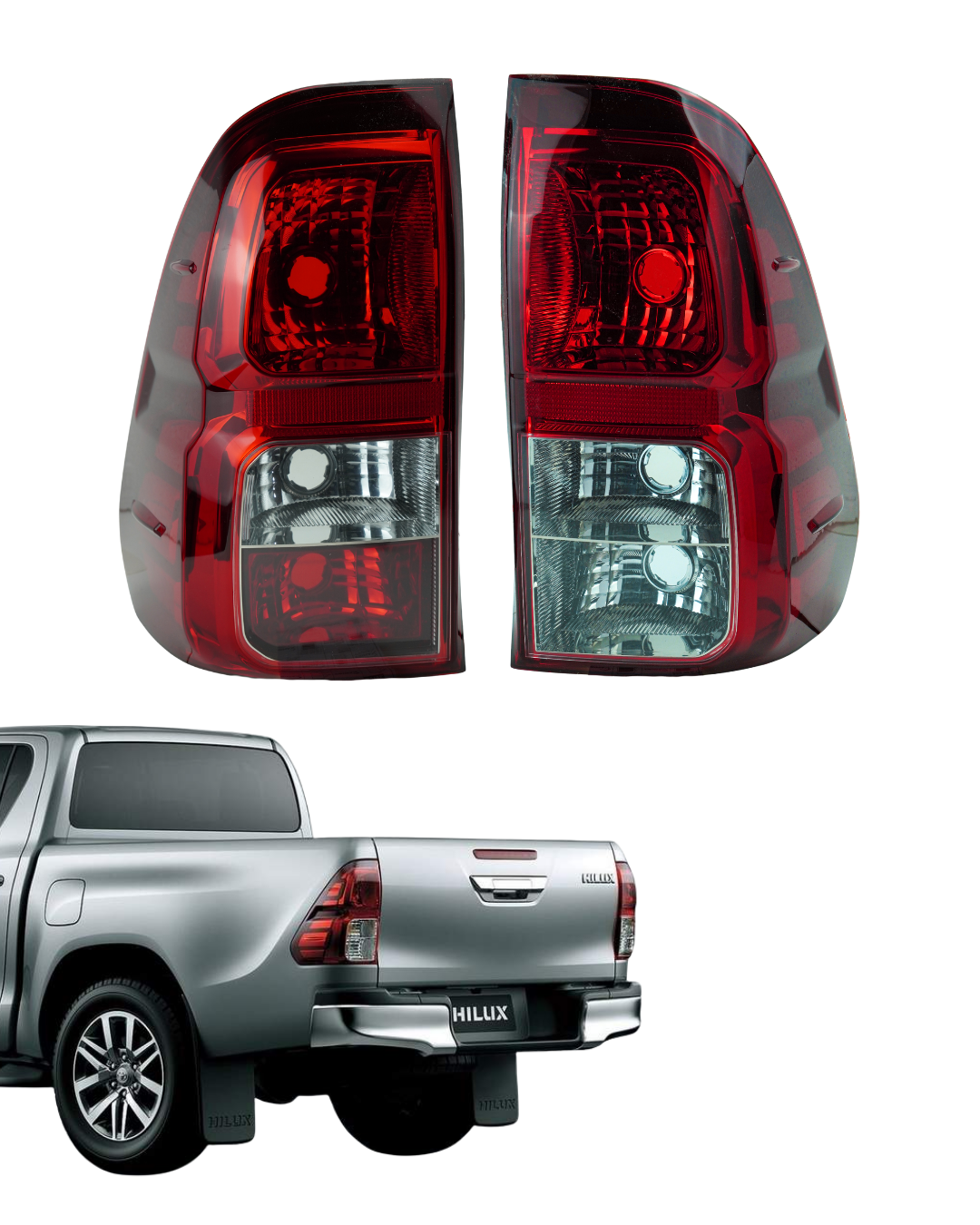 Par de lanternas traseiras desenvolvido para garantir sinalização correta e segurança na parte traseira do veículo. Indicado para a Hilux, contribui para o funcionamento adequado das luzes de posição, freio e seta, além de manter o padrão visual do conjunto traseiro.